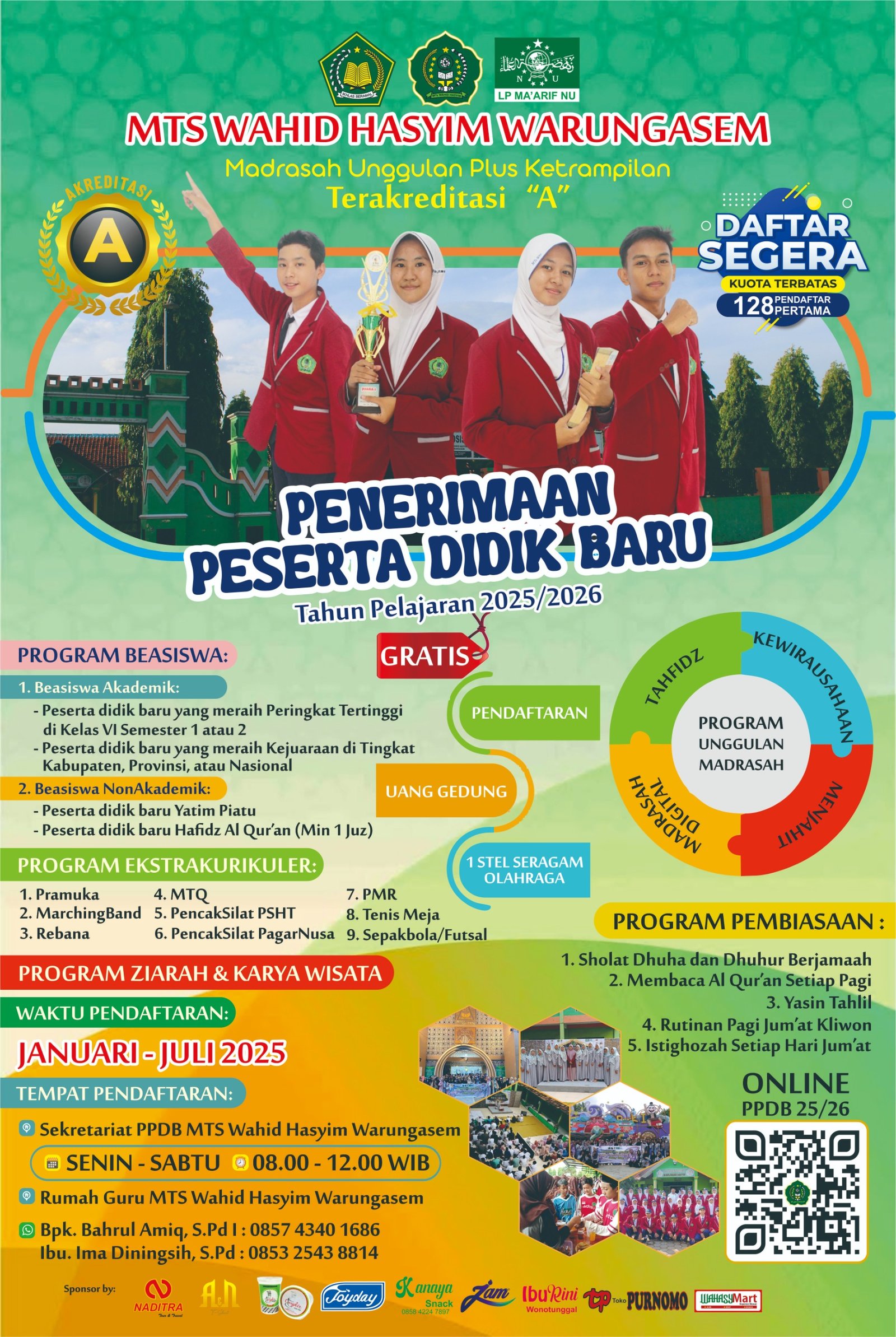 PENERIMAAN PESERTA DIDIK BARU (PPDB) MTs WAHID HASYIM WARUNGASEM TELAH DIBUKA!