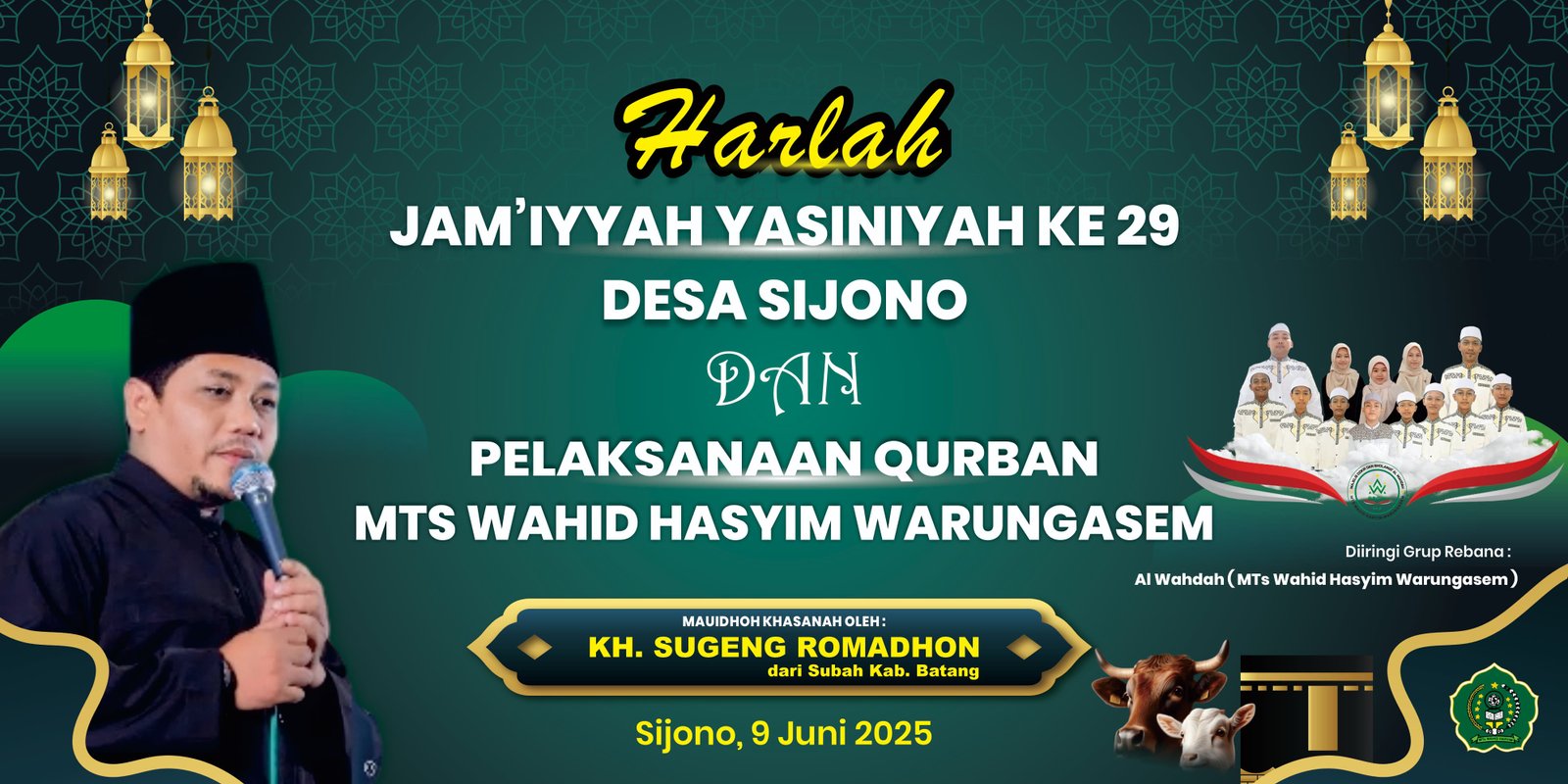 MTs Wahid Hasyim Warungasem dan Warga Desa Sijono Gelar Penyembelihan Hewan Qurban dan Pengajian Umum Harlah Jam’iyah Yasin