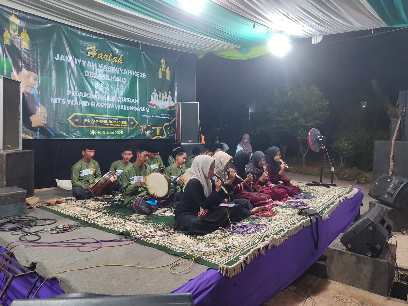 Rangkaian acara hari itu tidak berhenti sampai di situ. Pada malam harinya, tepatnya pukul 19.00 WIB ba’da Isya, dilanjutkan dengan Pengajian Umum dalam rangka Harlah Jam’iyah Yasin Warga Sijono. Acara ini merupakan bentuk sinergi antara Jam’iyah Yasin Warga Sijono dan MTs Wahid Hasyim Warungasem.