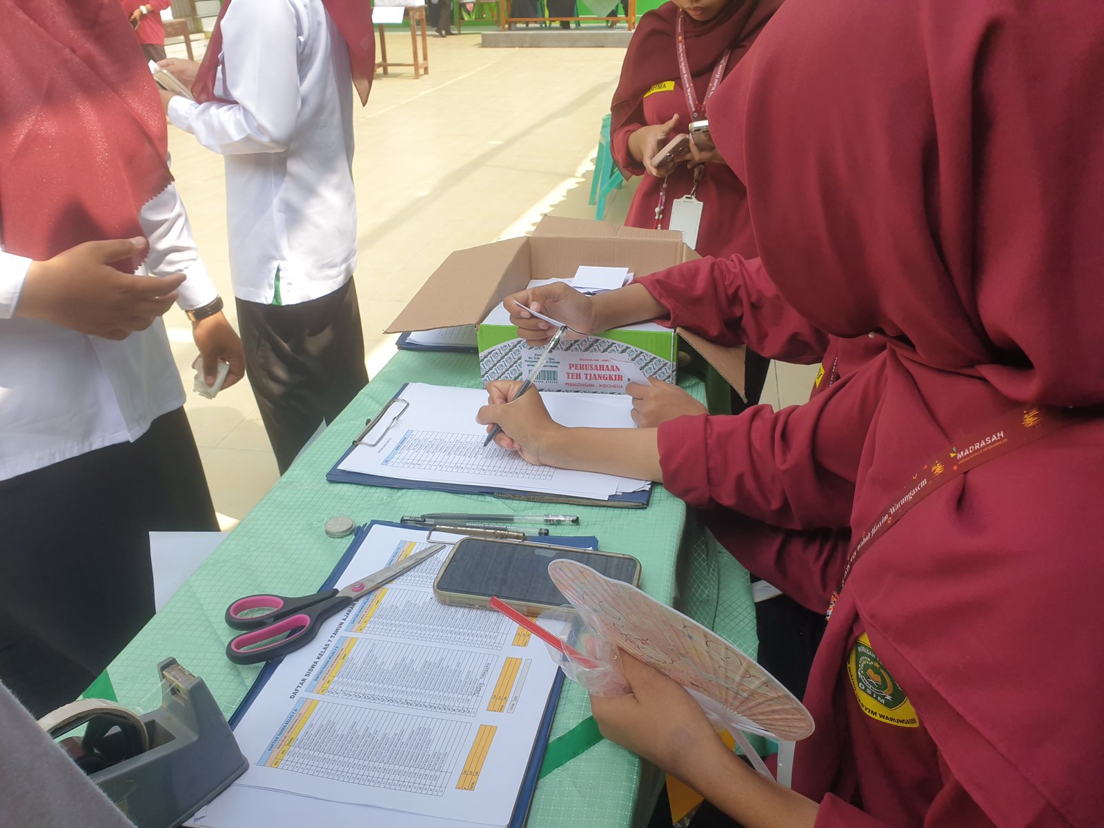 Pemilihan yang digelar setiap tahun ini selalu jadi momen paling ditunggu-tunggu oleh para siswa. Semua warga madrasah — mulai dari siswa, guru, hingga tenaga kependidikan (TU) — ikut berpartisipasi dalam pesta demokrasi mini ini. Suasana mirip banget kayak pemilu beneran, lho! Ada bilik suara, daftar hadir pemilih, panitia dengan seragam rapi, sampai suara antusias teman-teman yang sibuk mendukung jagoannya masing-masing.